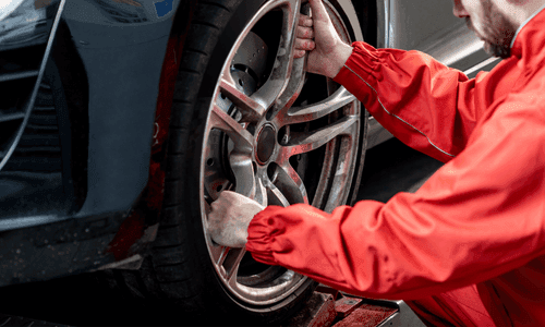 Løse hjul: Vi vasker hjulene grundig når de er tatt av bilen.